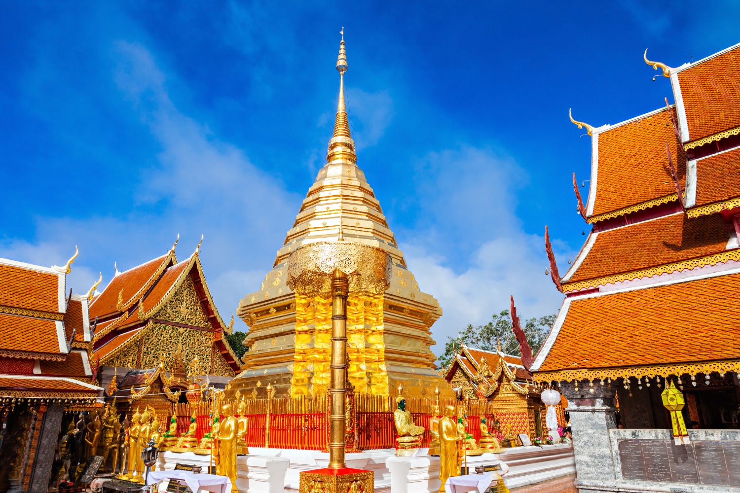 Llegaremos y visitaremos a Wat Doi Suthep, un templo magnífico ubicado en lo alto de una montaña boscosa a 1000 metros de altura. Tendremos  que subir una escalera de 290 escalones cuyas rampas representan dos nalgas gigantes. Desde la plaza podremos admirar el panorama de todo el valle de Chiang Mai. Este templo sagrado ofrece una vista espectacular de la ciudad, así como una gran variedad de imágenes y frescos.