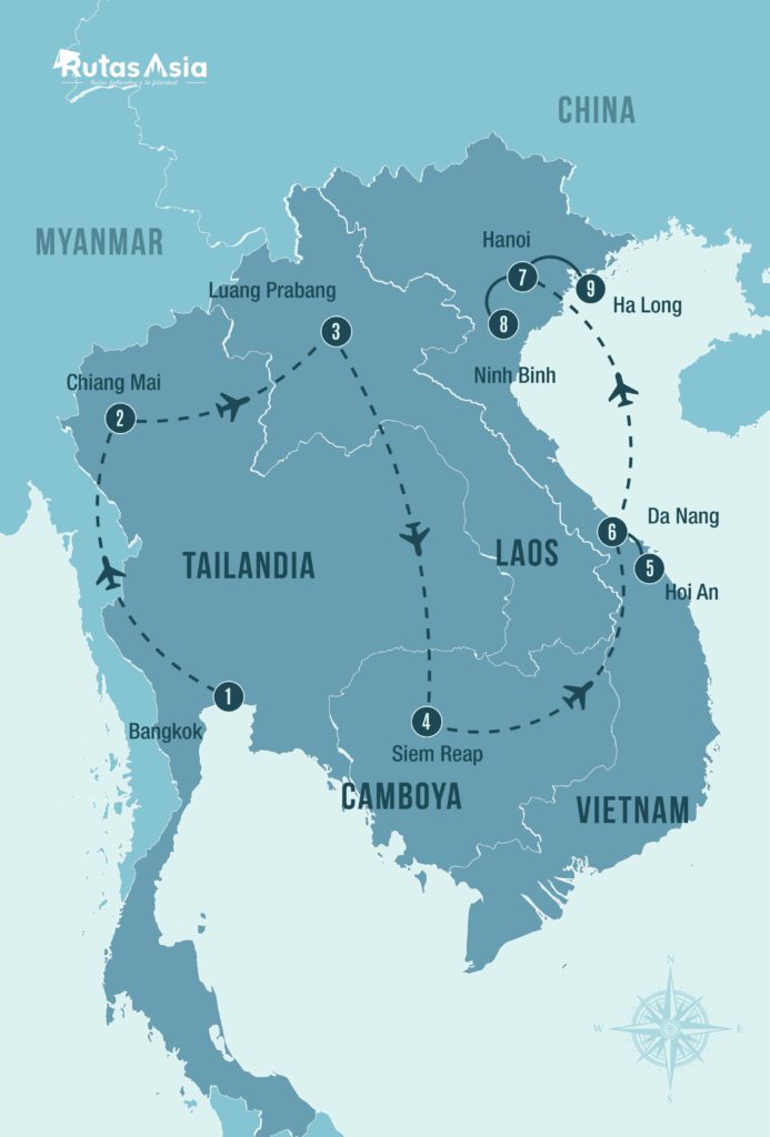 El último día, desayunaremos en el hotel y te llevaremos al Aeropuerto de Hanoi, donde daremos por finalizada este circuito de 21 días por Tailandia, Laos, Camboya y Vietnam.