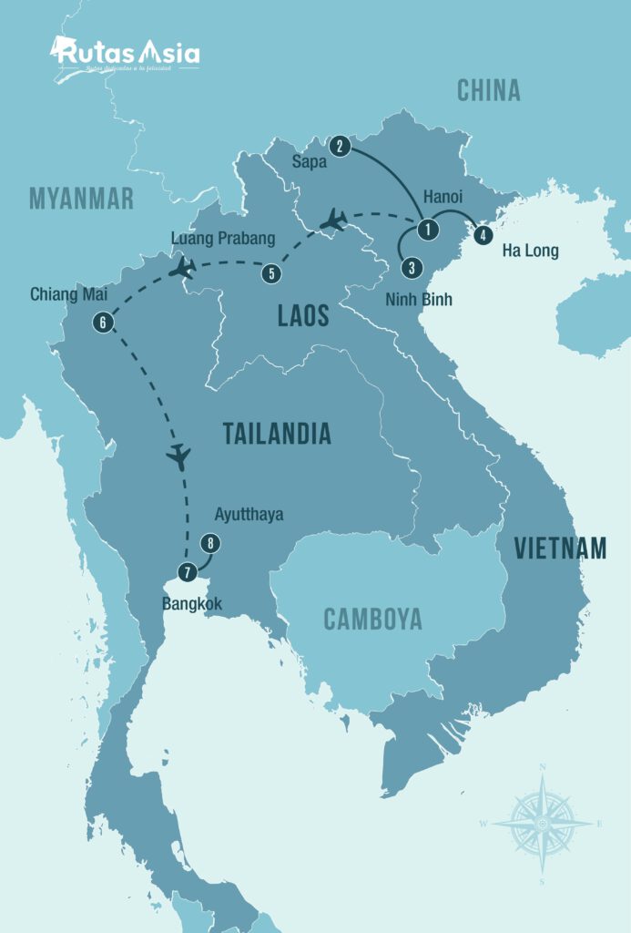 En su viaje de 17 días por Vietnam, Laos y Tailandia, disfrutará de impresionantes montañas: los verdes valles de Sapa en Vietnam, las vistas de Luang Prabang en Laos, y las colinas de Chiang Mai en Tailandia. Cada región ofrece una inmersión en la vida de tribus locales, como los Hmong y Dao en Vietnam, los Khmu y Hmong en Laos, y el Karen en Tailandia. Experimentará la riqueza cultural de estos pueblos y sus coloridas tradiciones. ¡Prepárase para una aventura visualmente deslumbrante y culturalmente enriquecedora!