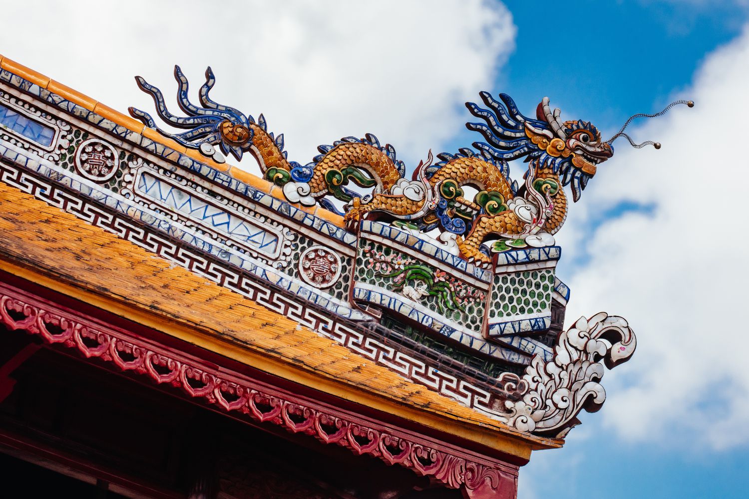 Desde allí, continuaremos hacia la tumba del emperador Khai Dinh, una joya arquitectónica que destaca por su fusión única entre estilos orientales tradicionales y elementos del diseño occidental. La estructura, con sus detalles en mosaico y piedra oscura, refleja el gusto refinado y algo excéntrico de este monarca, ofreciendo una visión singular del arte funerario imperial.