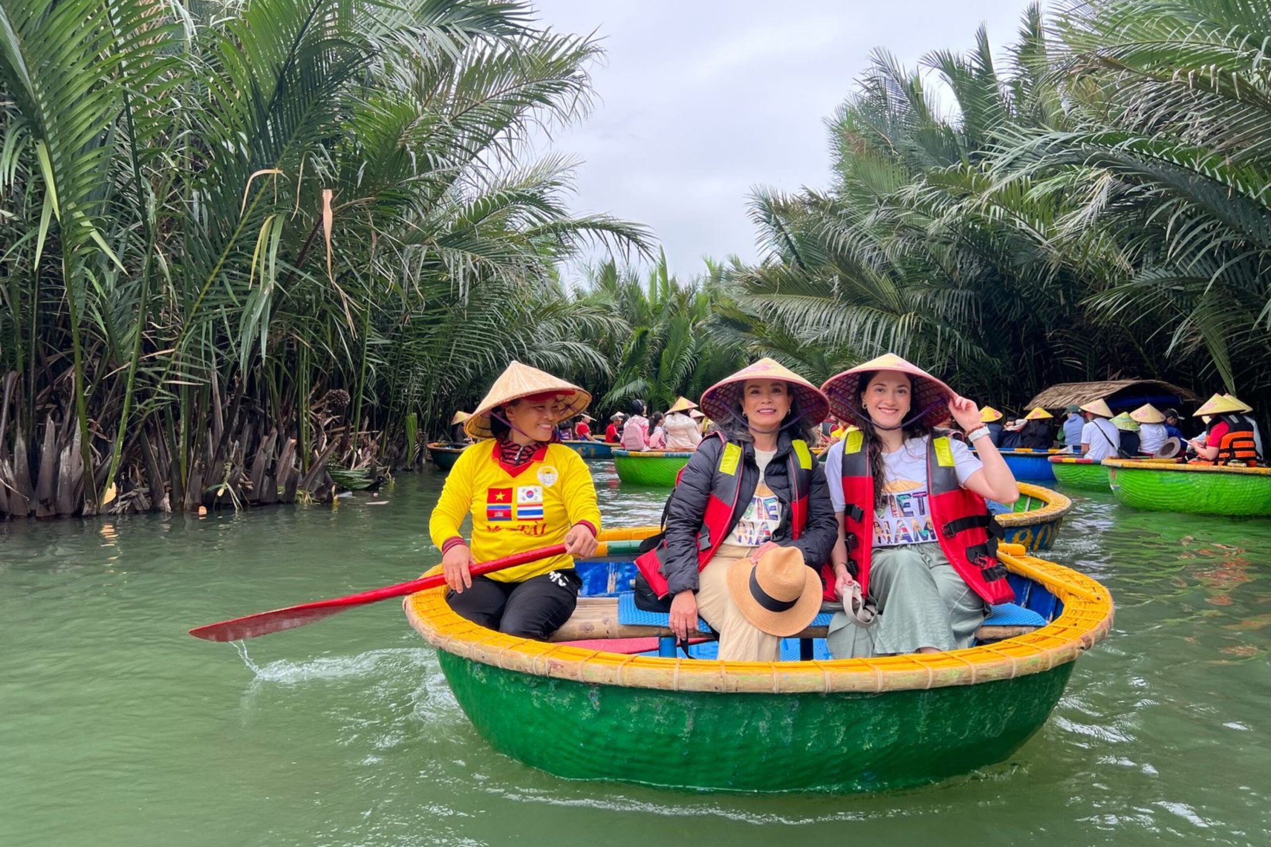 Más tarde, nos embarcaremos en barco para un crucero por el río interactuándonos con los pescadores locales y disfrutaremos de una gran experiencia práctica de la pesca con red tradicional. También experimentaremos remando un barco-cesta de bambú que solo hay en Vietnam, en las aguas del paraíso de palmas de coco.