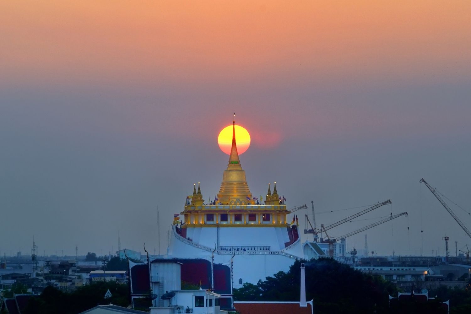 Visitaremos el Wat Saket, conocido como el Templo del monte dorado, una de las vistas más impresionantes de Bangkok con su estupa dorada, ofrece unas vistas panorámicas espectaculares de la ciudad.
